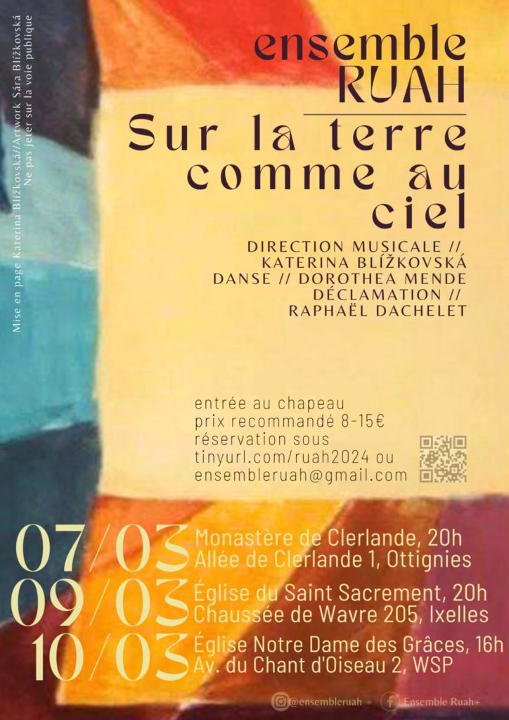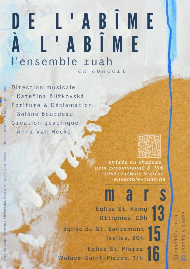 En mars 2025 a eu lieu la quatrième édition des spectacles de l’ensemble Ruah mêlant chant, déclamation et création visuelle.
